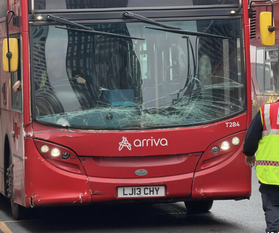 Emergency services were called to a serious bus collision in Croydon at lunchtime today after a vehicle crashed into a building near a busy town centre road.
