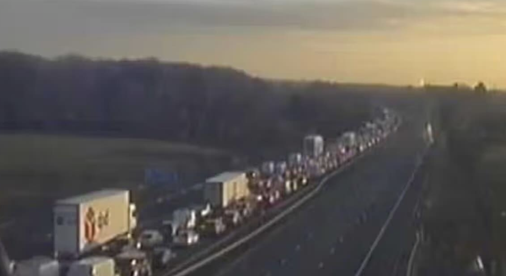 Police confirmed a single vehicle overturned and hit an embankment on the hard shoulder. The driver is receiving treatment for injuries, but they’re not life-threatening.