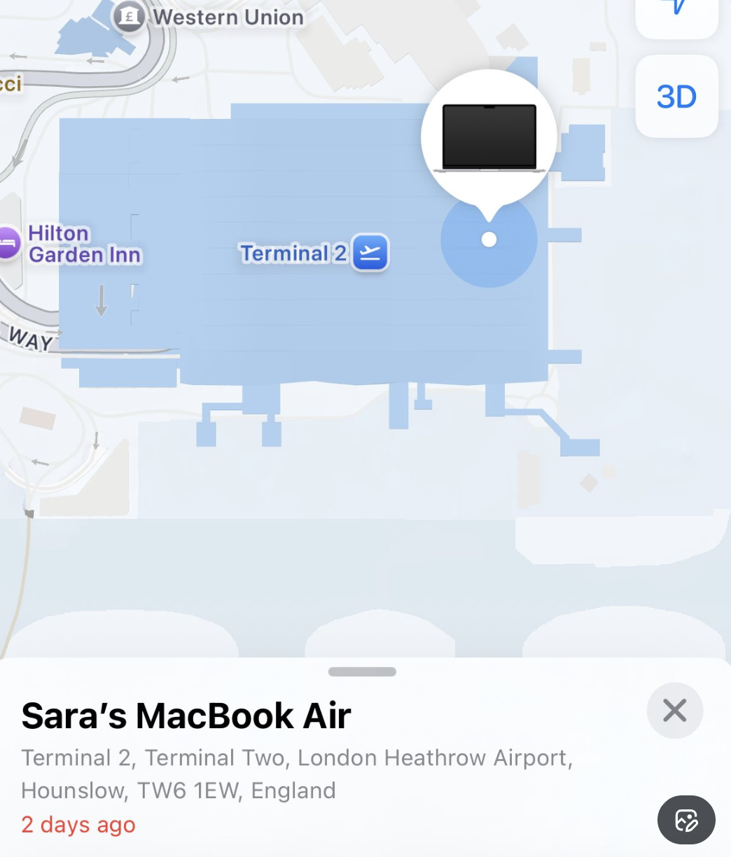 The Afghan-Canadian entrepreneur first spotted her MacBook using Apple’s ‘Find My’ feature at Heathrow’s Terminal 2. But when she contacted Heathrow’s lost and found and Air Canada, she hit a brick wall.