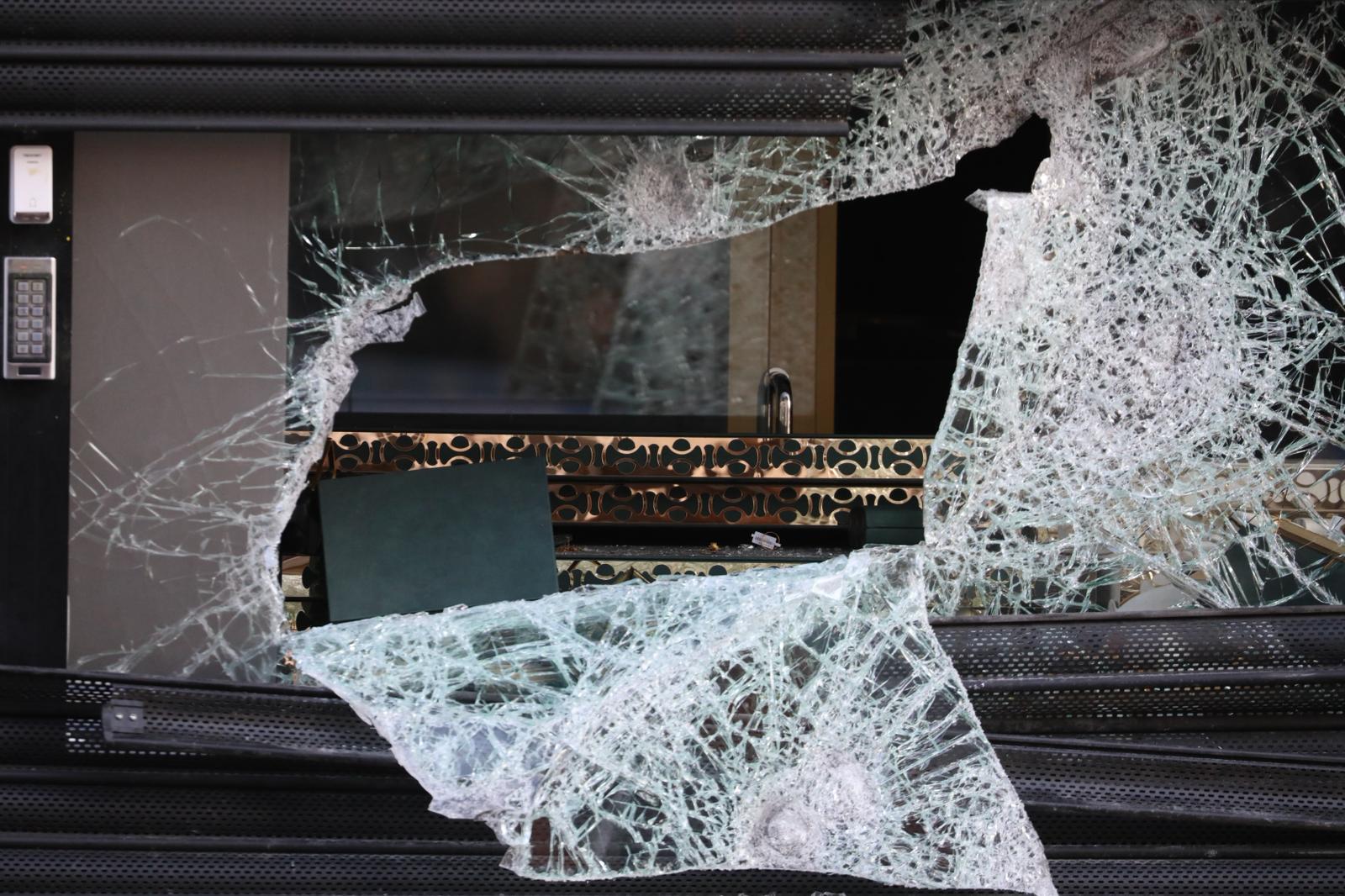 The gang is thought to have made off with high-value jewellery. When police tried to intervene, one man threatened them with a hammer, though no officers were injured.