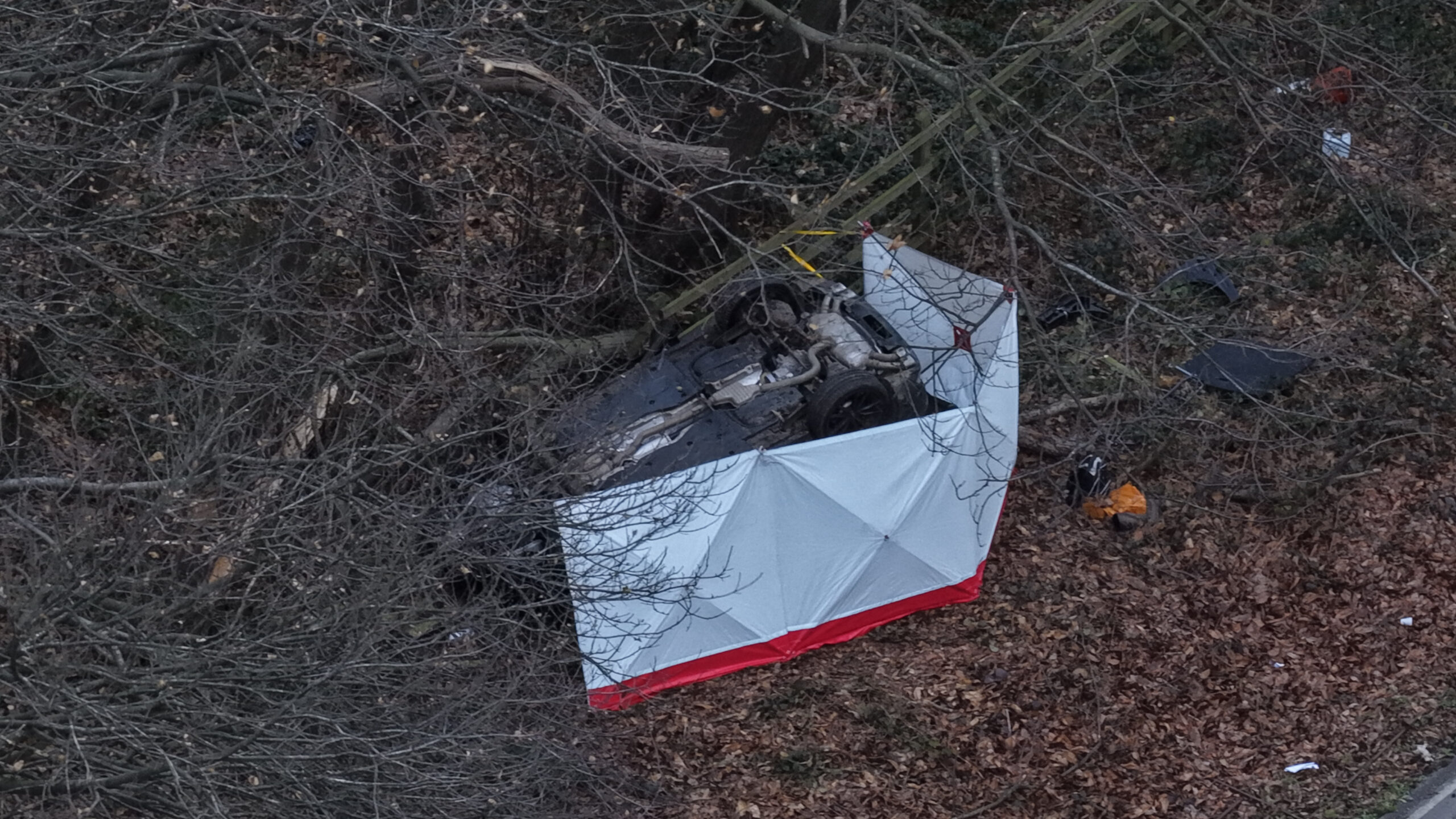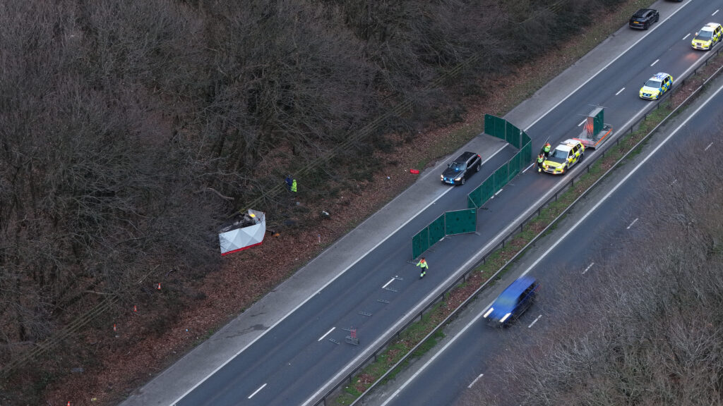 A witness reported seeing a barrier put up and a heavy emergency presence. Traffic site Inrix revealed the car hit the central reservation, flipped over, and then caught fire.