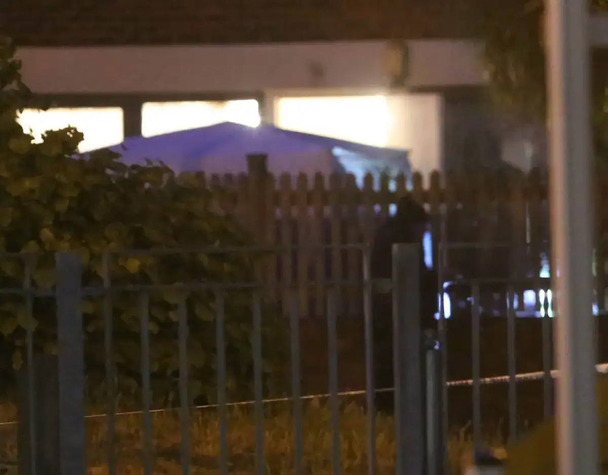 Shocked neighbours have revealed that shots were fired and a blue and white tent has been put in the rear garden.