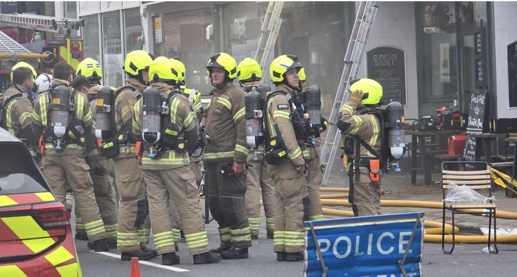 Eight fire engines and about 60 firefighters have rushed to tackle a blaze on The Broadway, Wimbledon. The fire broke out in a single-storey commercial property housing a takeaway restaurant.