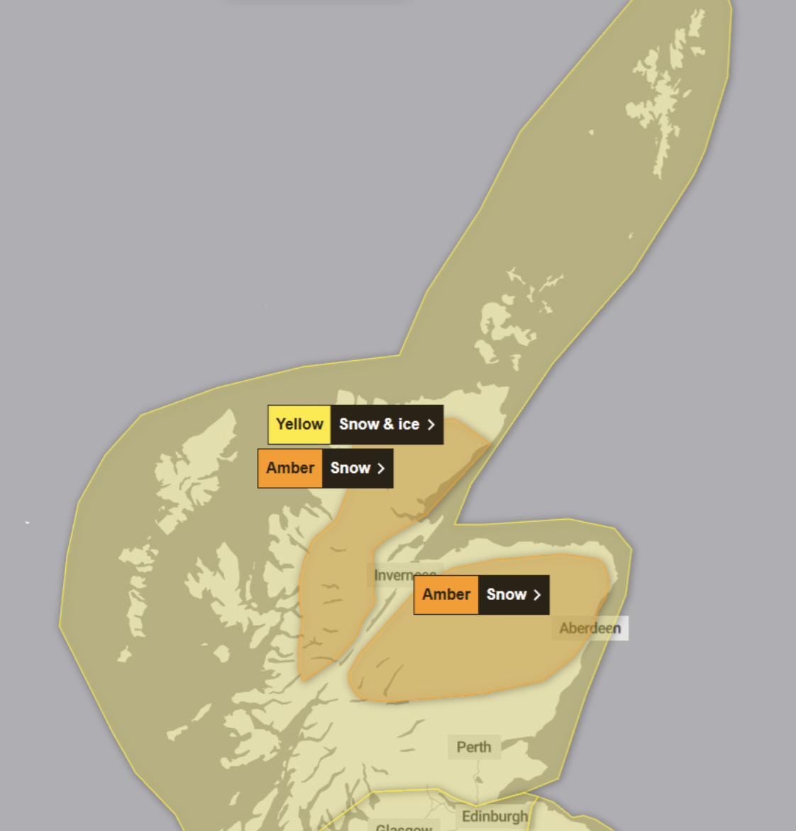 Amber weather warnings are now in force across Grampian, Highlands & Eilean Siar, and Central, Tayside & Fife. Here’s what you need to know: