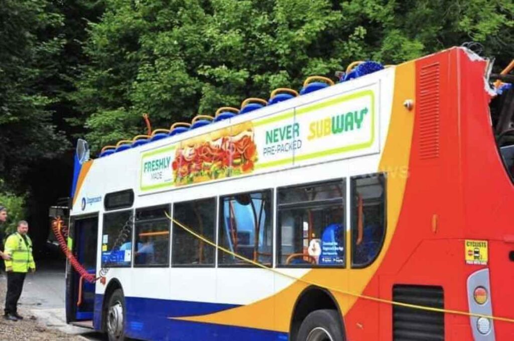 South Central Ambulance Service (SCAS) began to receive multiple 999 calls around 08:10am this morning all reporting a double decker school bus having collided with the railway bridge on Wellhouse Lane, Winchester, resulting in the roof being ripped off the top of the bus.
