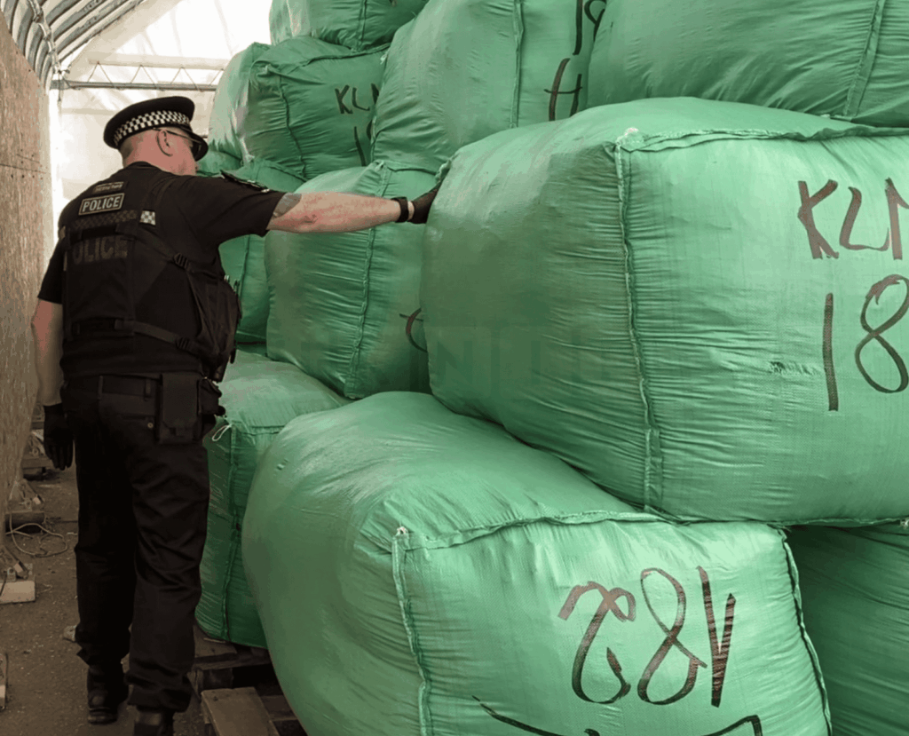 Inside, officers found industrial-grade equipment including washing machines, conveyor belts, scales, cages, and a forklift truck. Stacks of sacks filled with clothes, shoes, toys, and prams—most believed to be nicked from charity bins—were piled high, sometimes four layers deep and up to the ceiling.