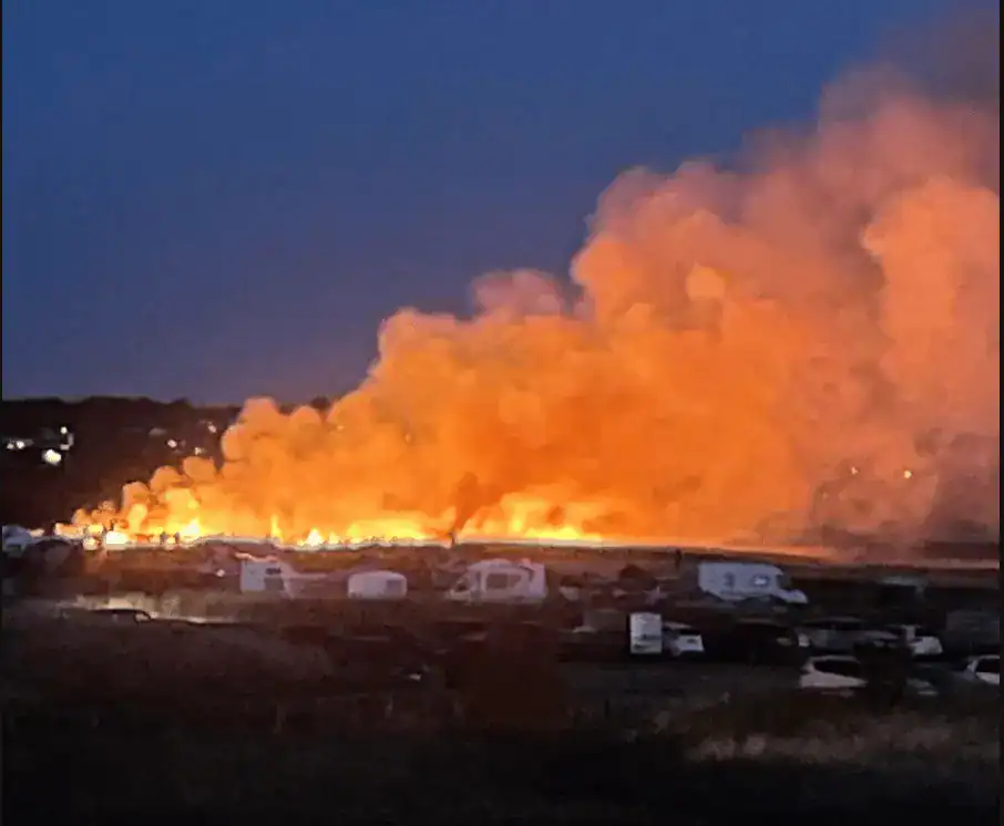 The blaze broke out after spreading to a large grass area. It is understood that two model aircraft with fireworks attached to them sparked the blaze