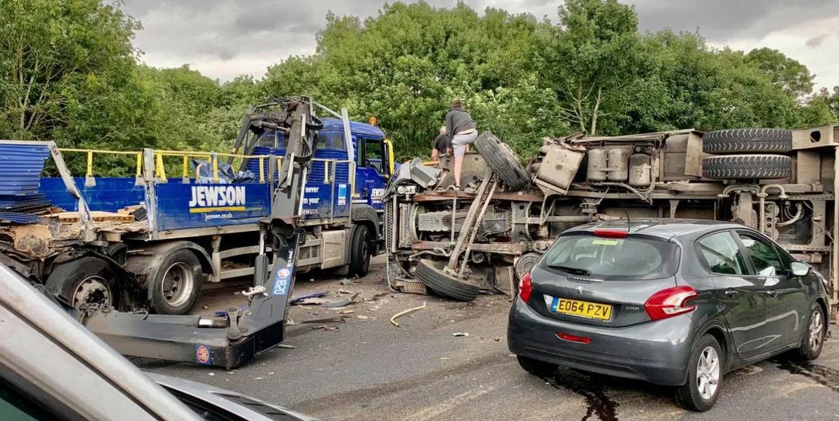 A spokesman for Essex Police said :’We are at the scene of a collision involving a car and two lorries on the A127 at #Rayleigh Weir.