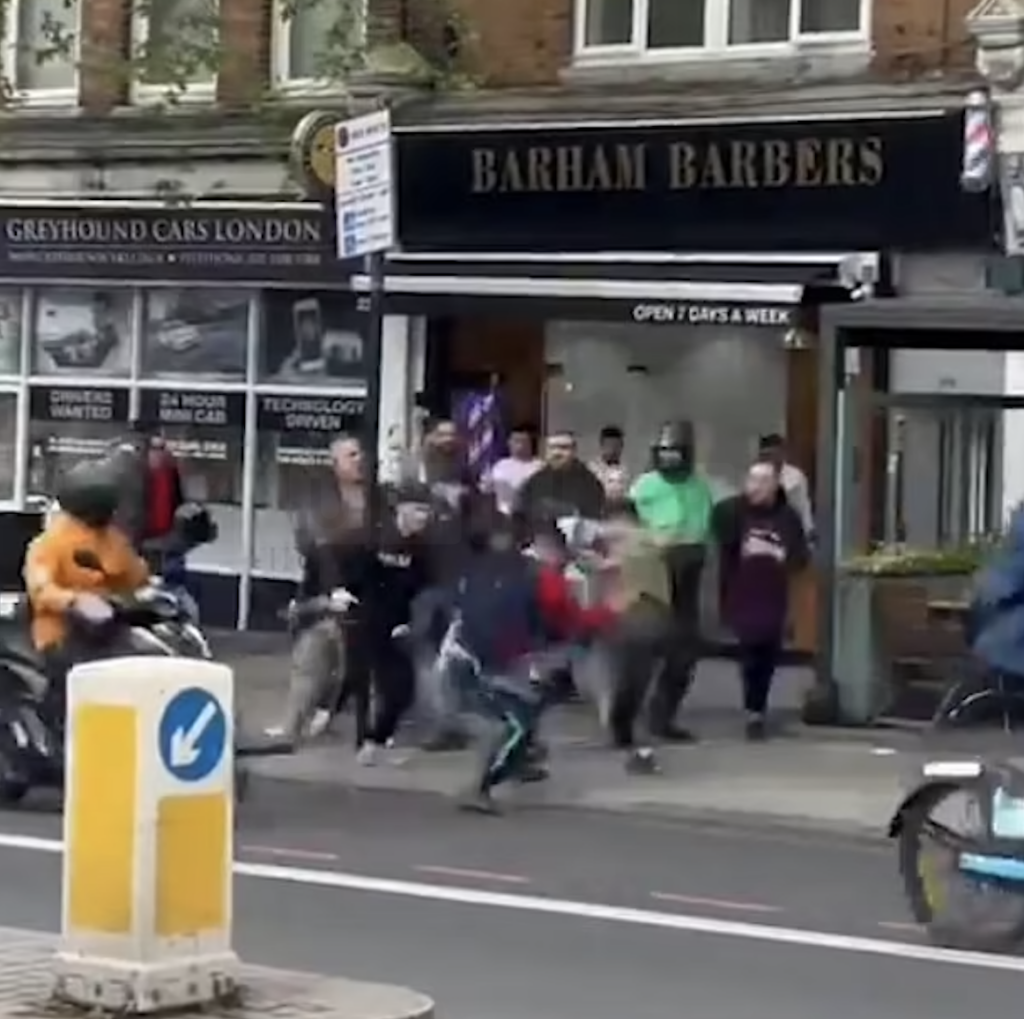 A shocking street brawl unfolded on Streatham High Road in London on Saturday, as a group of men clashed in a chaotic scene captured on video. Met police officers battled to contain the violence as the altercation spilt onto the road and into oncoming traffic.