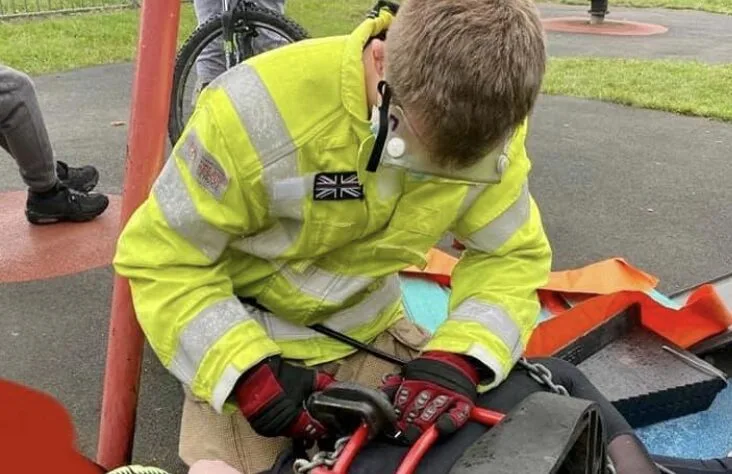 Firefighters from Hightown station were called to Turnpike Way, Hedge End Southampton after a teenager got stuck in a child’s swing whist performing a Tiktok video.