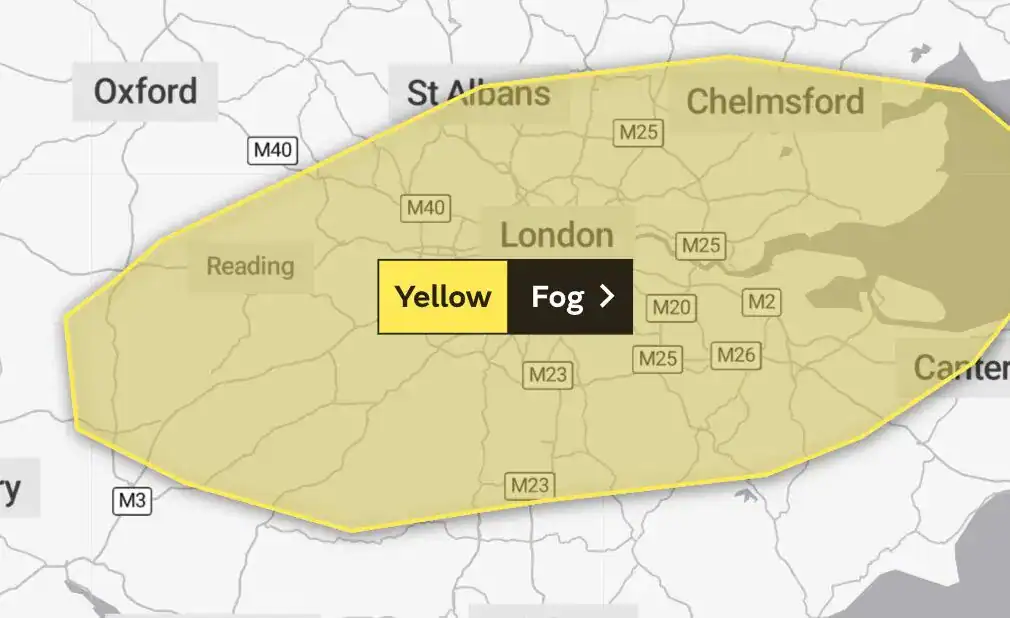 The Met Office has issued a Yellow weather warning for Fog, dense in places, expected to cause some travel disruption this morning.