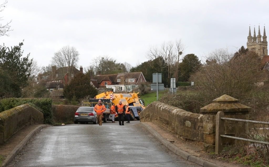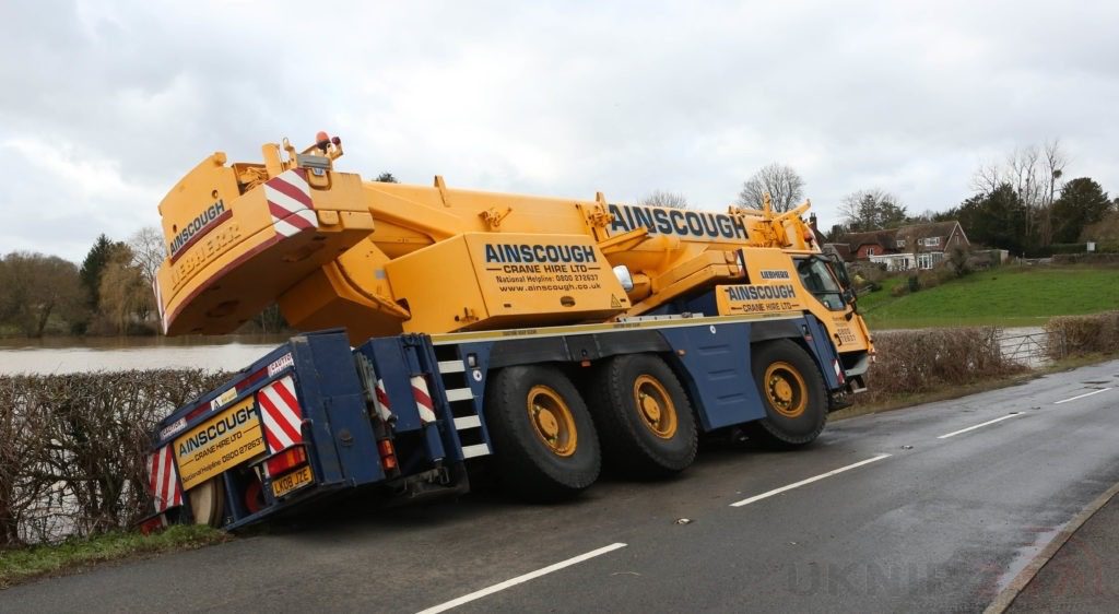 Oops 40 Ton Crane leaves the road in Kent Village