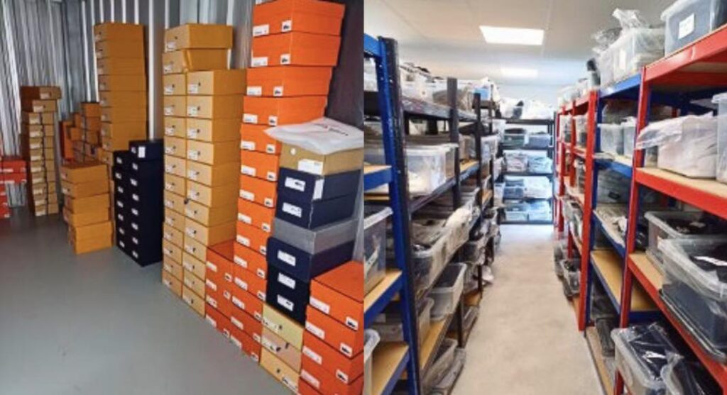 Raids on four linked storage units revealed 5,459 fake items, ranging from footwear and clothing to bags, watches, and accessories. One unit even had shelves and packaging stations set up to process and ship the dodgy goods.