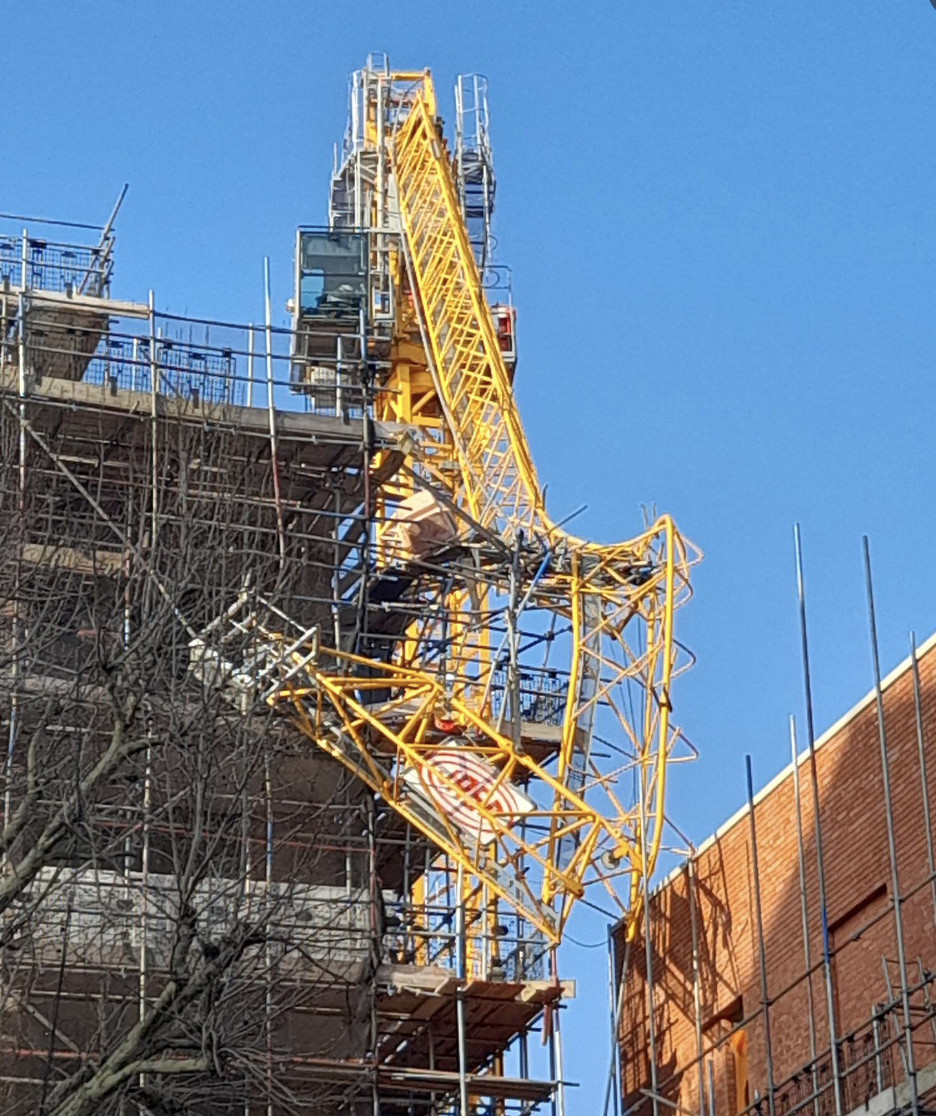 A crane toppled over this morning at a construction site on Barlbly/Treverton Road, right next to a primary school. Luckily, no one was hurt, and the crane did not fall into the school building.