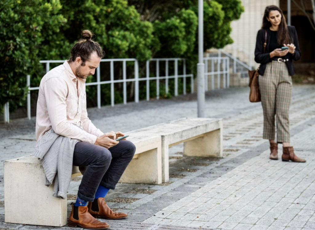 A notification is checked. A message is read. A short scroll fills a gap of a few seconds. Then the screen goes dark again as attention returns to the street.