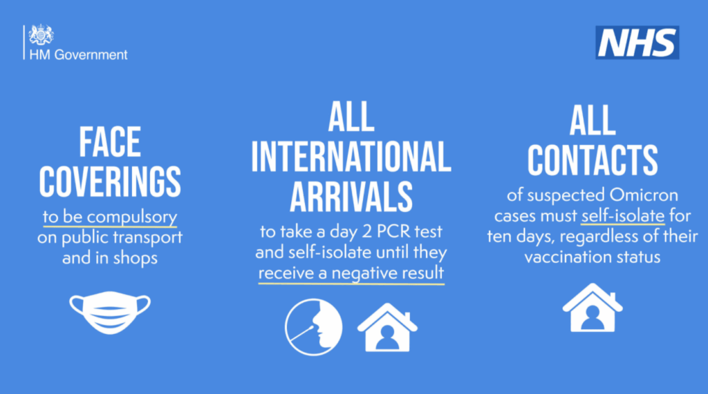 All contacts of suspected Omicron cases must self-isolate for 10 days, regardless of their vaccination status. They will be contacted by NHS 1 and Trace.