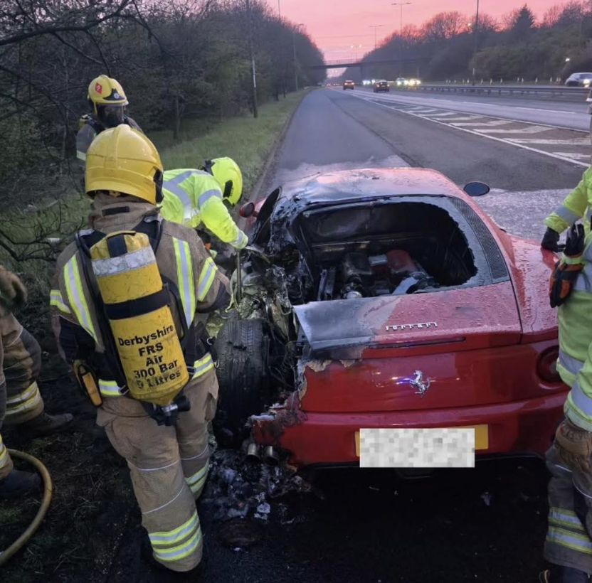 A jaw-dropping Ferrari was completely gutted by flames yesterday on the A52 westbound, proving even luxury rides aren’t immune to disaster.