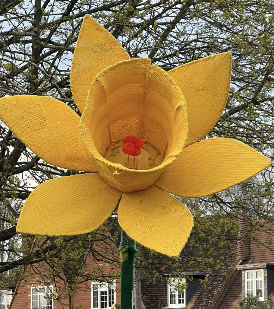 Hurst village near Wokingham is bursting with Easter cheer, thanks to a stunning 14-foot daffodil that’s nearly as tall as the village sign. This giant floral marvel is already turning heads and putting smiles on the faces of locals and visitors alike.
