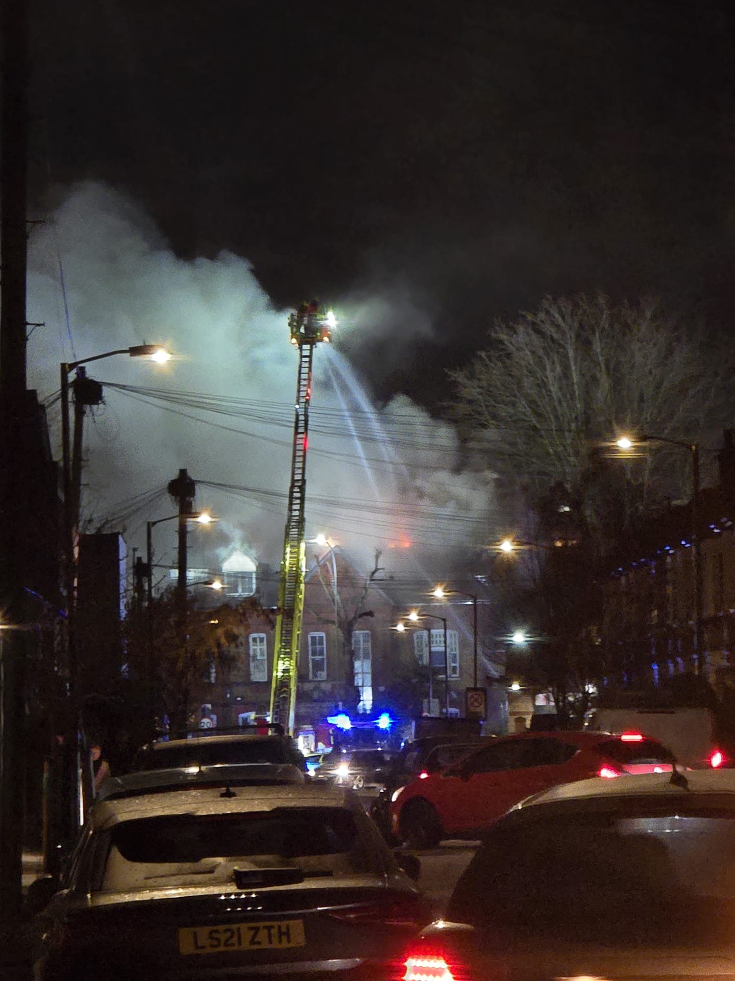 The London Fire Brigade remains on site, tackling the flames at the junction of Rosenthal Road. No reports of injuries have emerged yet, but the situation is ongoing.