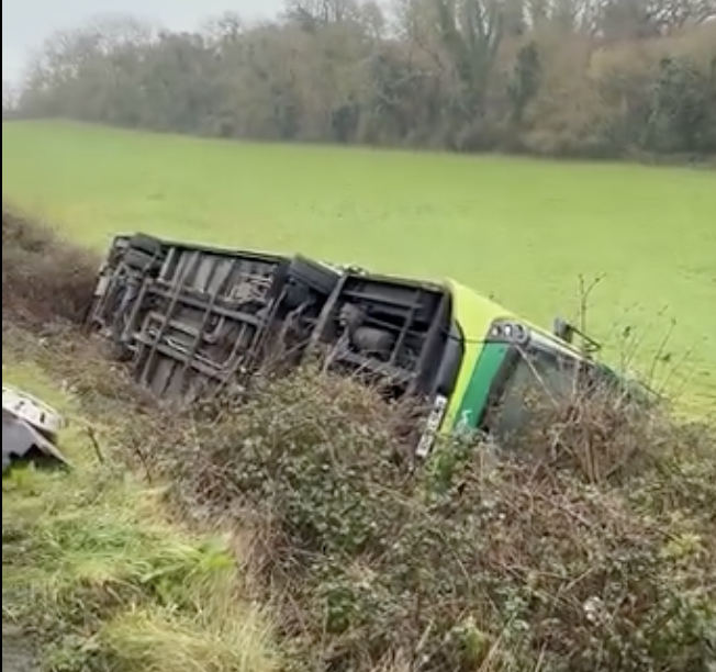 A harrowing bus crash this morning at Brading has ended in luck, not tragedy. Four people on board a Southern Vectis double-decker bus walked away without serious injury after the vehicle flipped onto its side.