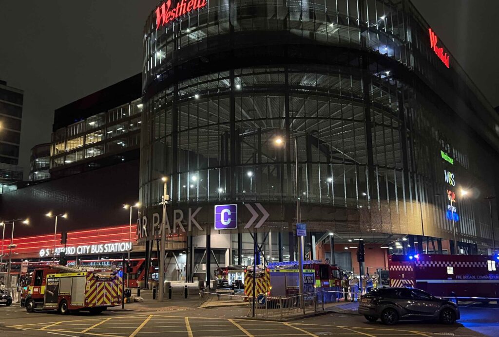 Six East London fire crews raced to tackle a fierce blaze that completely swallowed a car inside Westfield shopping centre’s enclosed car park.