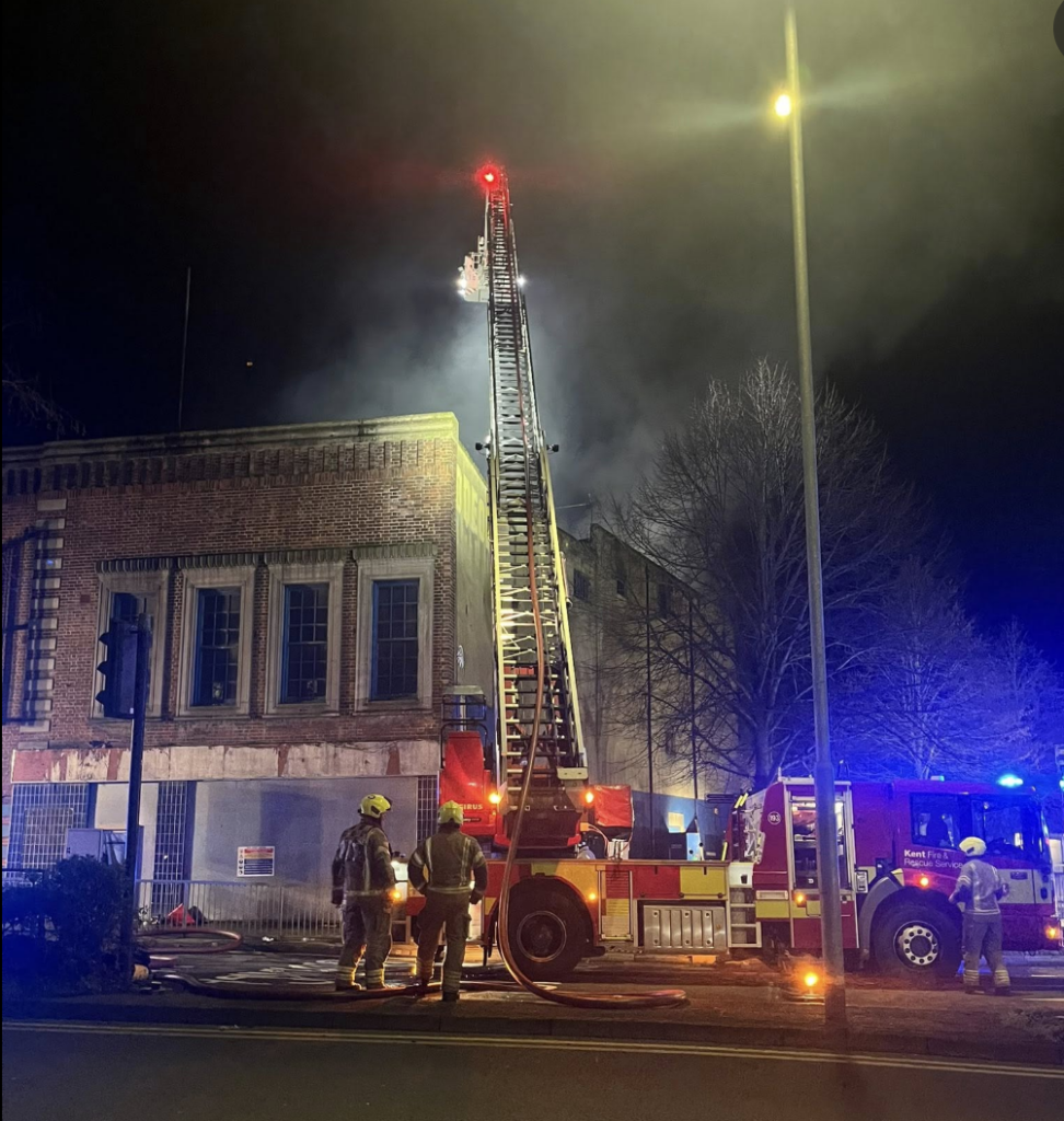 A blazing fire at a derelict building in Canterbury has sparked a major emergency response, with locals warned to keep their windows and doors closed due to thick smoke.