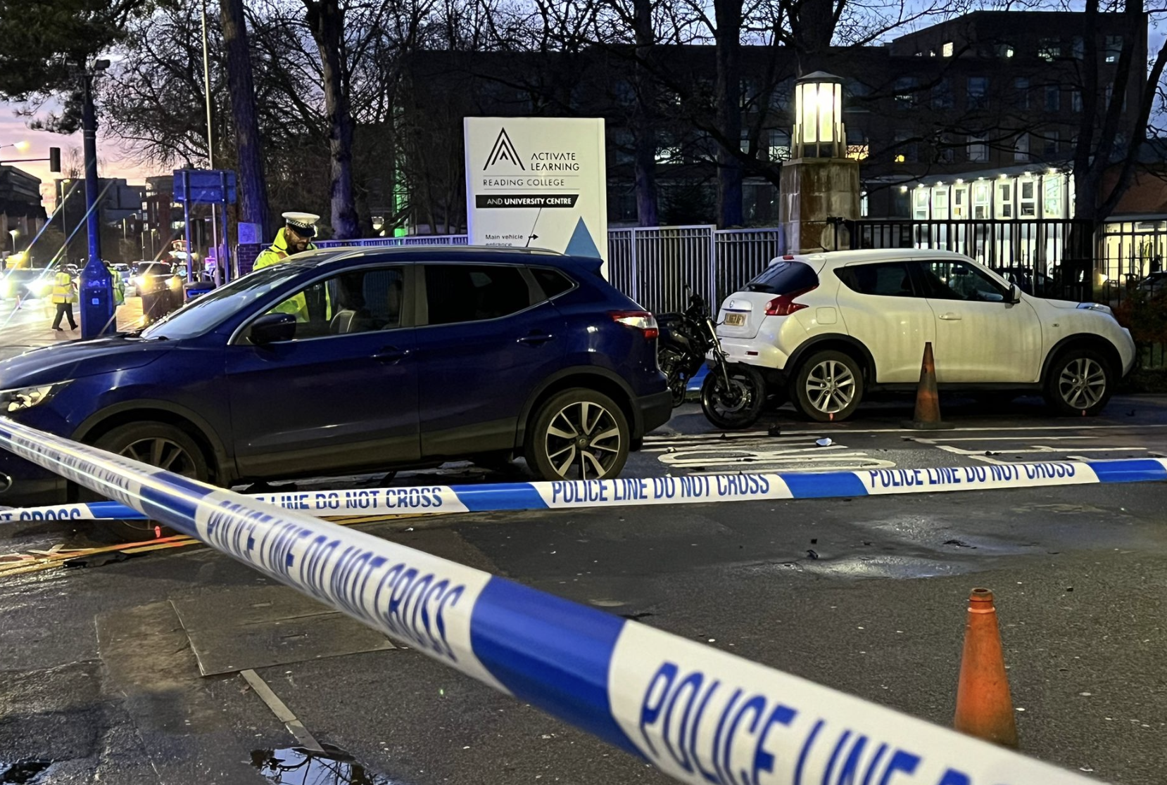 The crash happened outside Reading College’s entrance, forcing the closure of Kings Road earlier today.