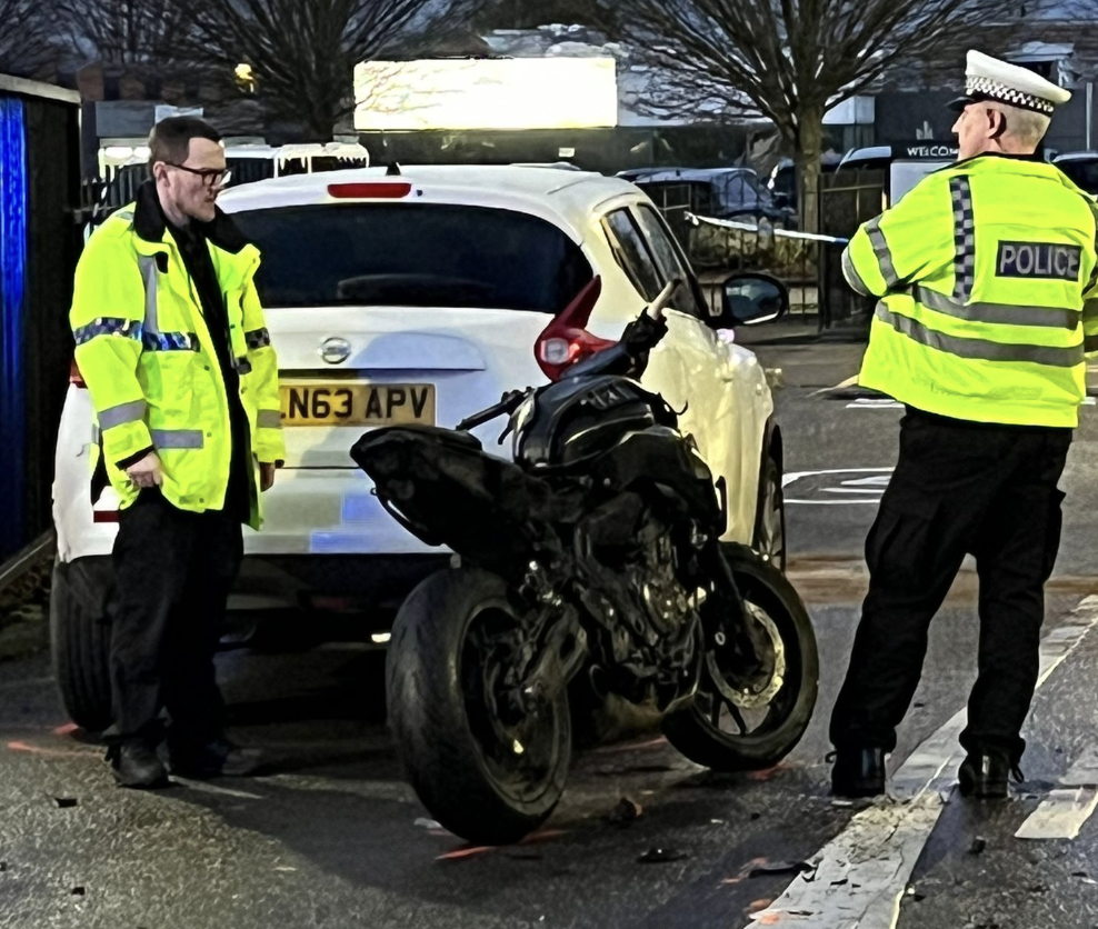 A late-teen boy was rushed to the hospital after a collision between a motorbike and car shut Kings Road in Reading.