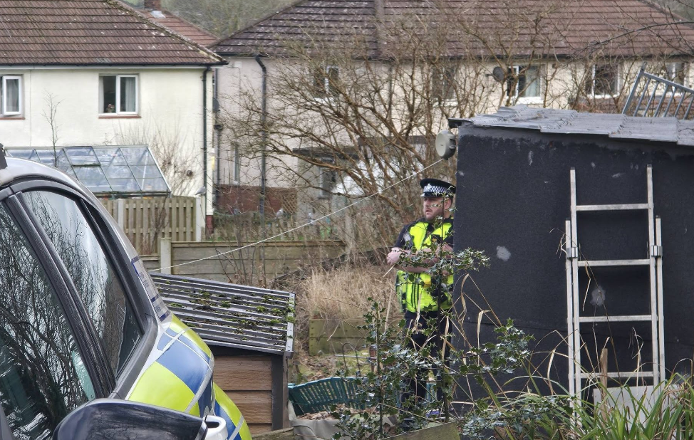 West Yorkshire Police swooped on a quiet Derry Hill street this afternoon, sealing off a home and garden shed amid a dramatic murder investigation.