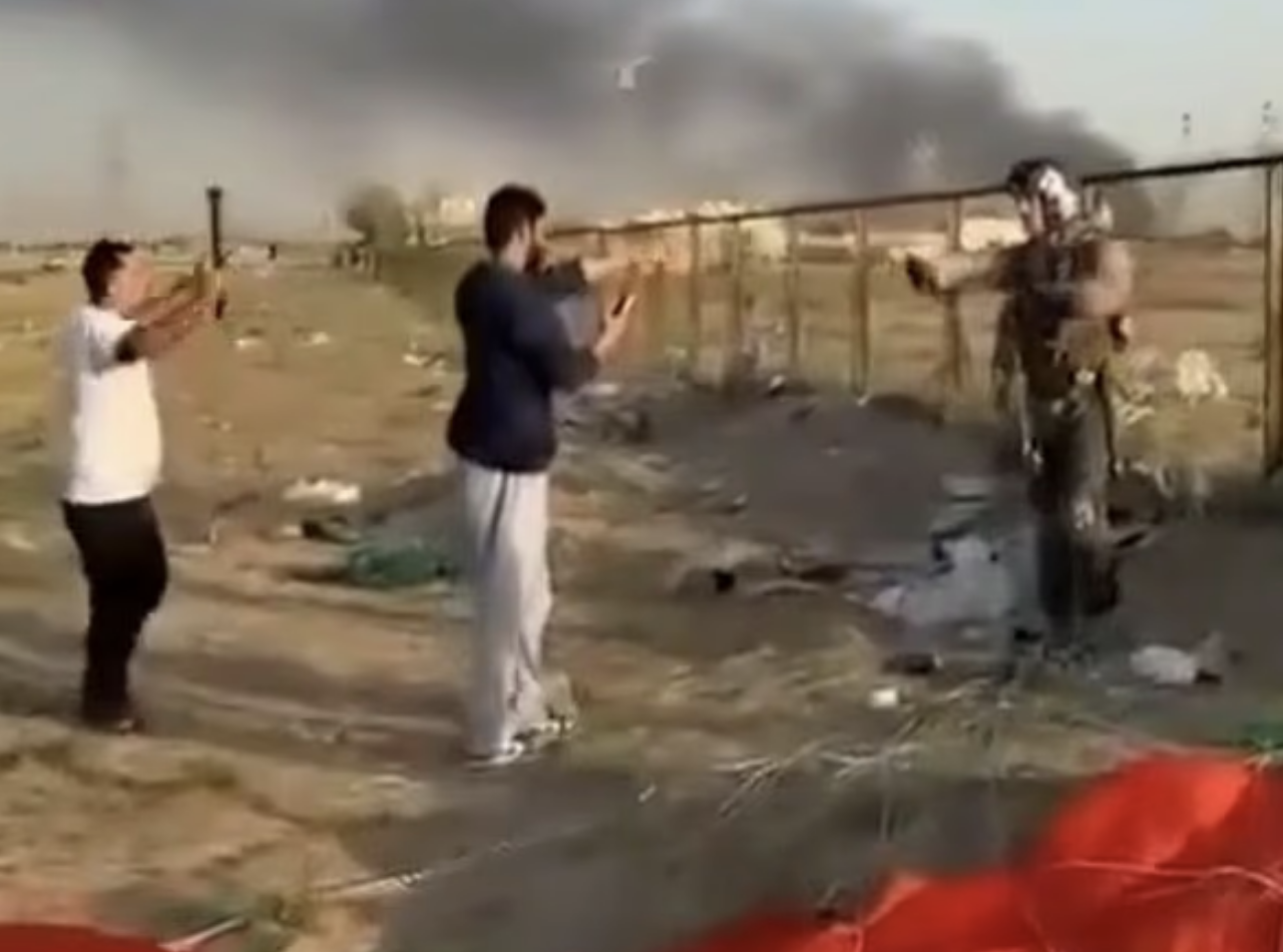 Social media footage shows a group of men closing in on the pilot, shouting and brandishing the pipe, as the airman repeatedly yells, “Back up. Stop!” The locals appear to mistake him for Iranian.