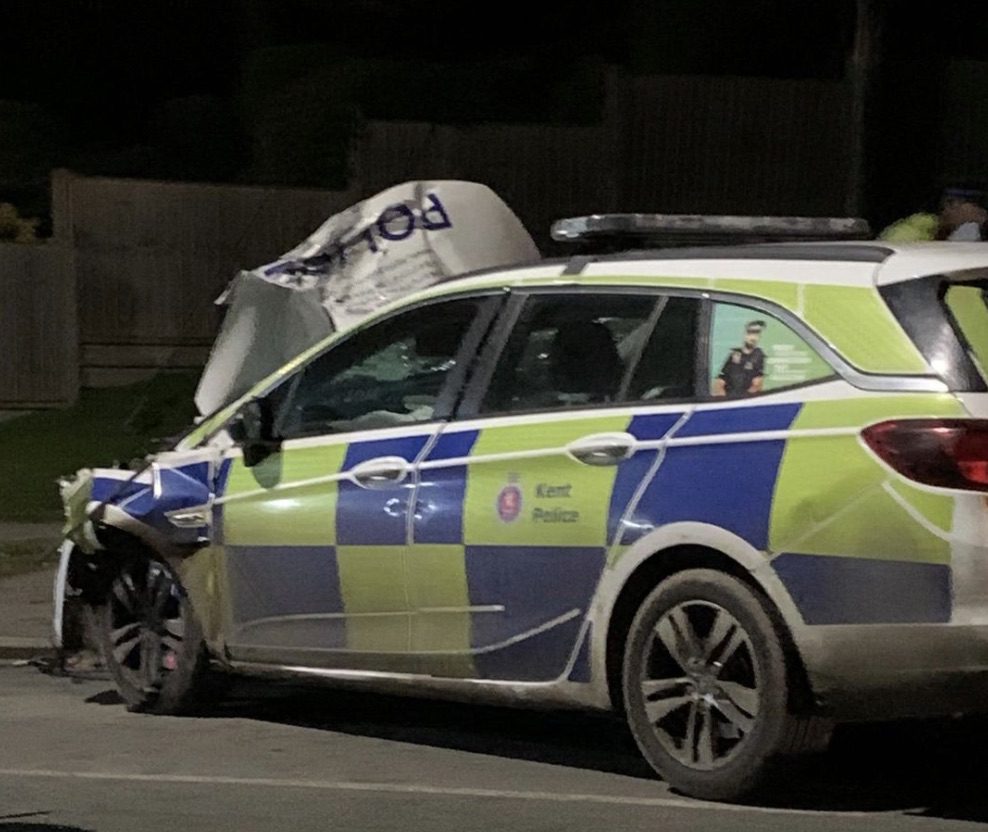 Witnesses to a collision between a car and a marked police vehicle in Minster are being sought