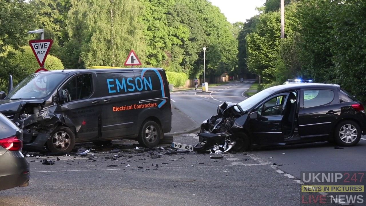 Two Vehicle Head on Collision Closes Bramley Village in Surrey A two vehicle head on collision between a car and works van has caused a rush hours traffic nightmare and left a woman in hospital